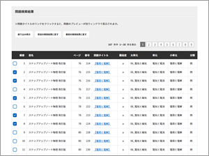 検索結果が多い場合は,「問題検索結果」画面の一覧表示から,問題をさらに絞り込んで表示することもできます。一覧の左端にある「選択」欄のチェックボックスをクリックしてチェックを入れます。